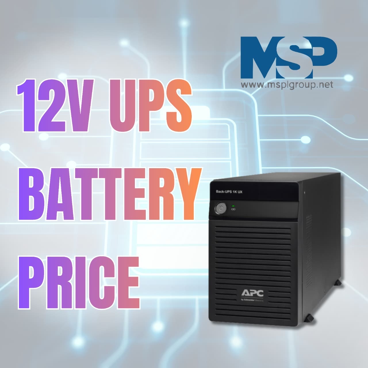 The backup provided by our 12 V UPS batteries from the MSPL Group is available at very competitive prices. A typical 12 V UPS battery—like a 12 V/12 Ah SMF battery—lists at about ₹ 2,200.