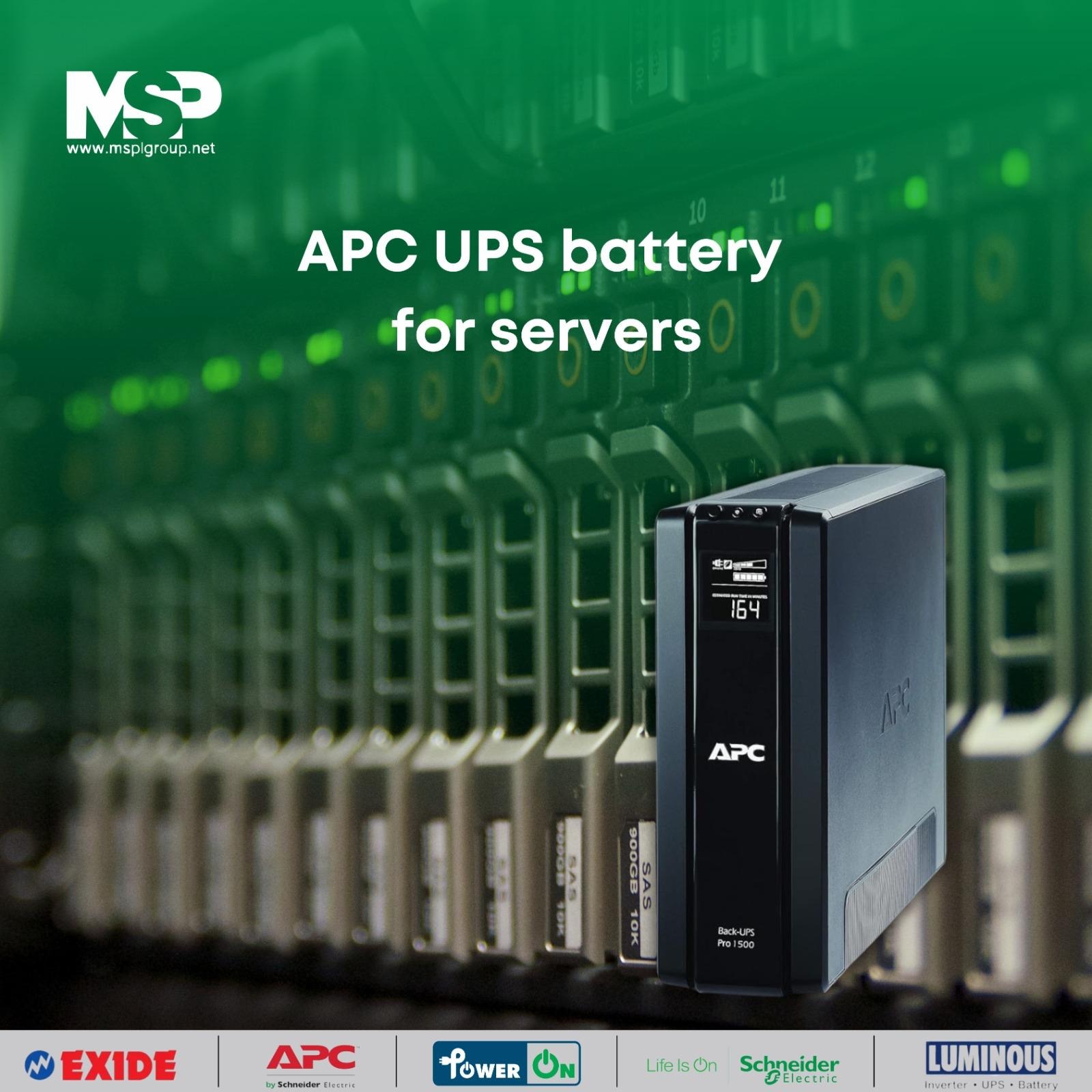APC by Schneider Electric is a worldwide leader in uninterruptible power supply systems, trusted for data centers, enterprises, and IT professionals around the world. APC UPS batteries give clean, stable power that protects against outages, surges, and fluctuations, while extending the life of your critical infrastructure. Coupled with proactive maintenance, battery health monitoring, and expert installation with the MSPL Group technicians, it's peace of mind and uninterruptible server performance.
