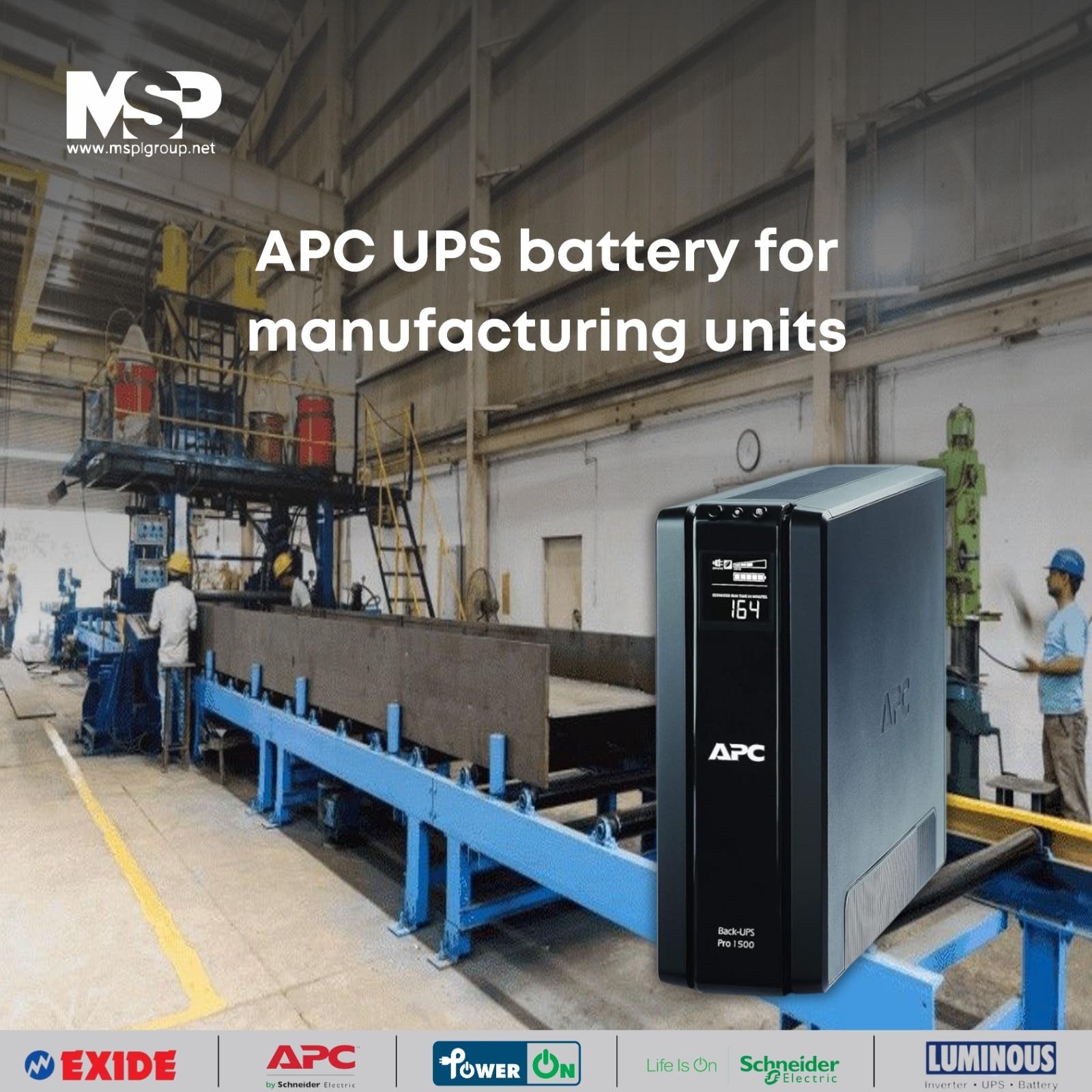 When you work with the MSPL Group, a Schneider Electric APC Premium Partner with over 30 years’ experience in the power protection industry, you get genuine APC UPS batteries, and we provide the full support you need in the industrial marketplace. We offer a range of APC replacement UPS batteries and power supply options to manufacturing industries with high power needs.