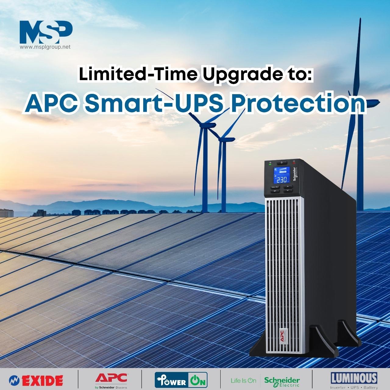 Power outages and voltage sags can cause damage to crucial equipment without any noise, besides interrupting normal business activity. With the special upgrade offer on APC Smart-UPS, MSPL Group, Mumbai, is now able to offer you intelligent protection solutions for your offices, server rooms, small data centers, hospitals, banks, and industrial environments. APC Smart-UPS offers you highly efficient, sinewave quality, network-protection levels, and sophisticated battery management capabilities, which will safeguard your equipment and perform flawlessly even in unstable environment conditions.