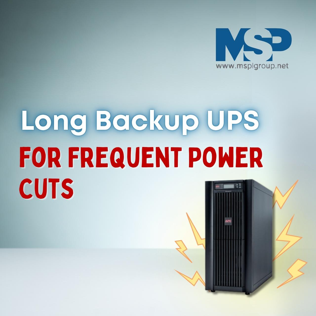 MSPL can also analyze your location and load requirements, then design and install a customized UPS solution, including battery setup and after-sales maintenance-helpful in cases where outages are long or unpredictable.
