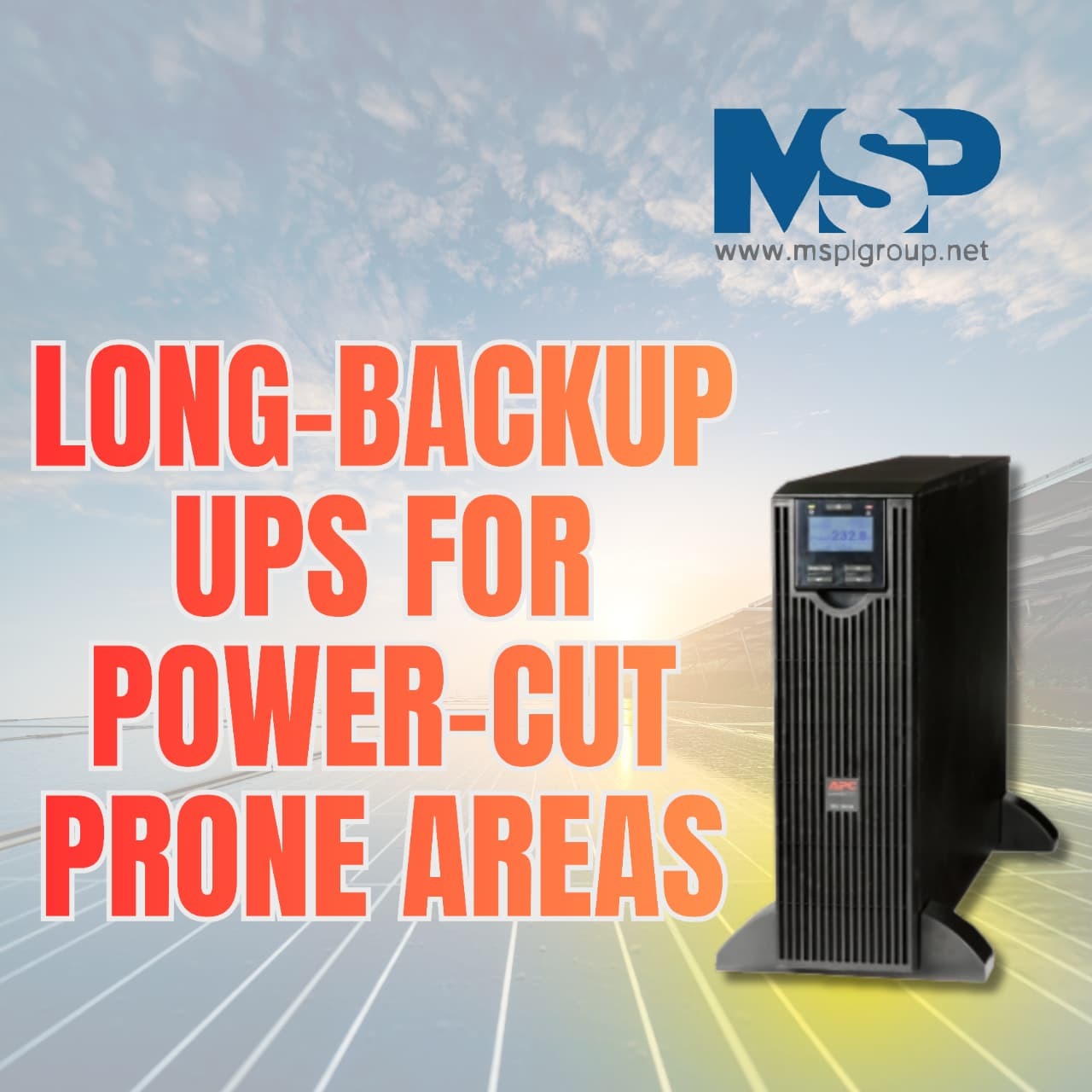Stay powered, stay protected-avail MSPL Group's long-backup UPS solutions for flawless, uninterrupted performance in power cut-prone areas. For more information, reach us at MSPL Group – +91 08048128715
