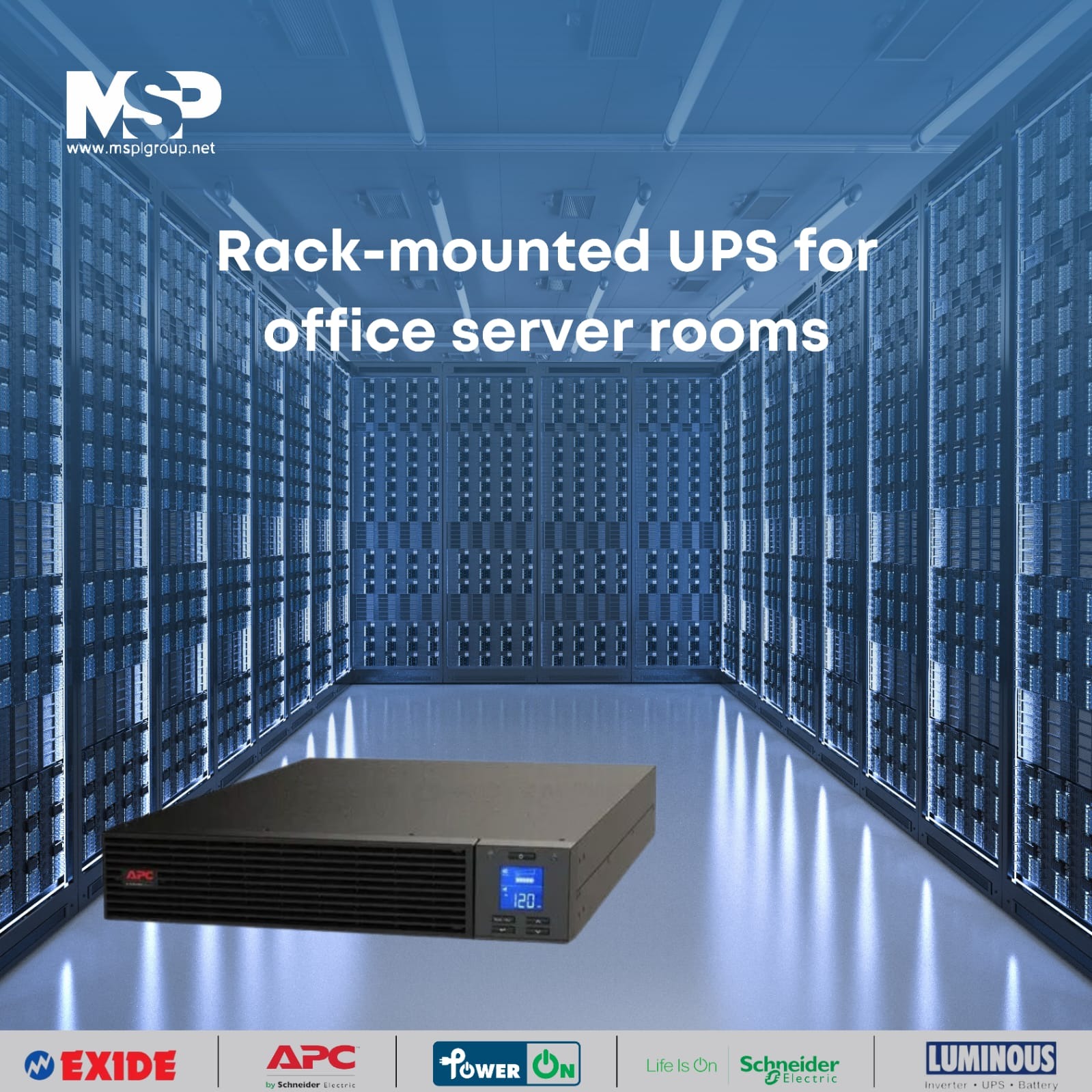 At MSPL Group, we offer Rack Mounted UPS Solutions for Office Server Rooms in Mumbai. In todayβs fast-paced business world, even a small downtime of a few minutes can cause serious loss to your business. At MSPL Group, we offer reliable UPS Solutions for Office Server Rooms with uninterrupted and maximum uptimes for your critical IT infrastructure.