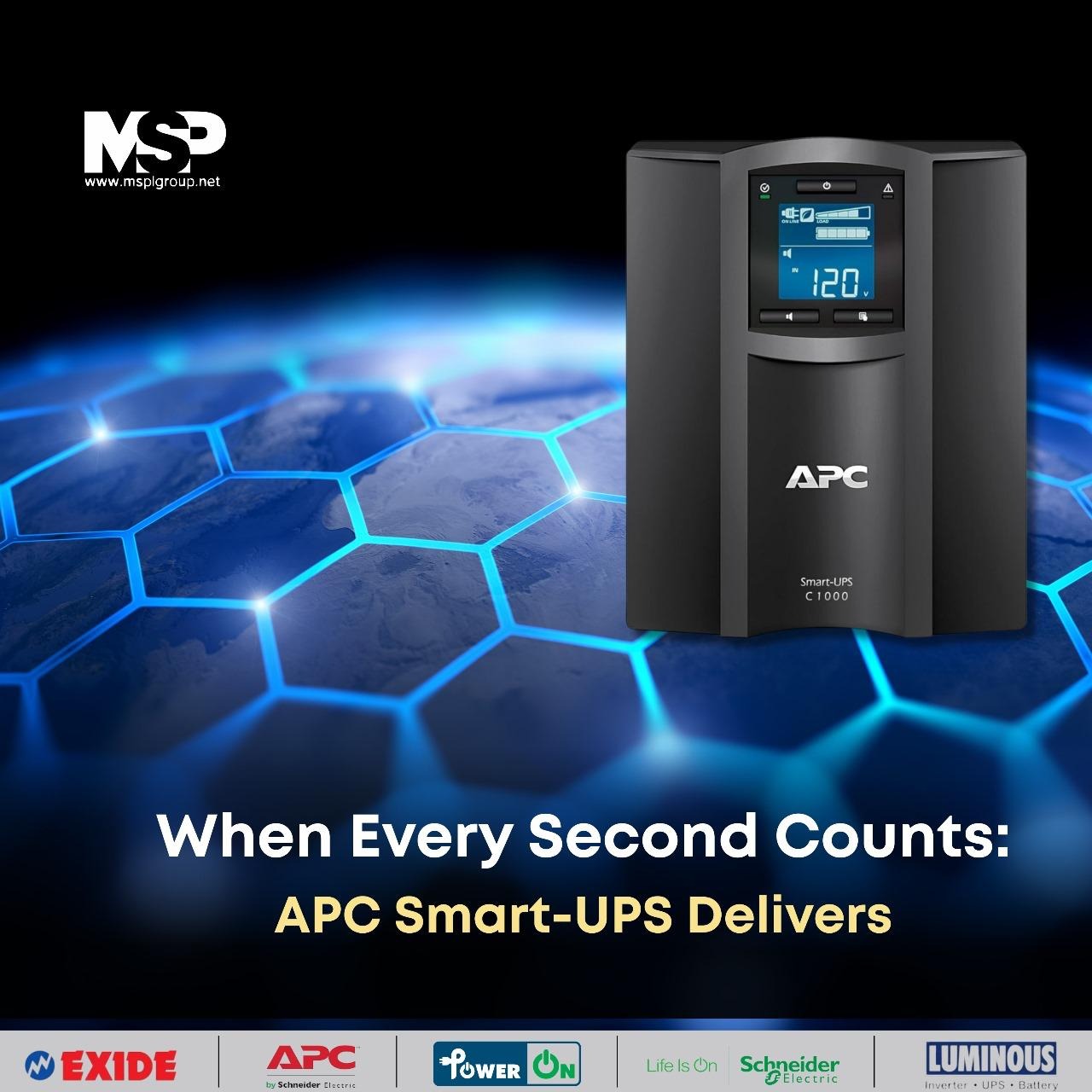 "Secure your operations in situations where every second counts." Contact MSPL Group, +91 80482 81715 Mumbai for more information on APC Smart-UPS available for your business.
